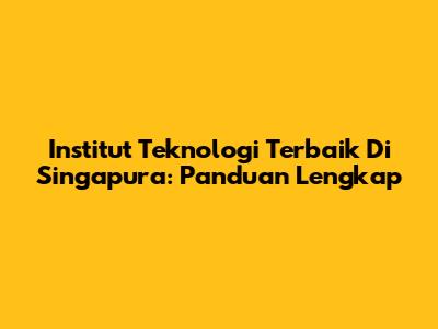 Institut Teknologi Terbaik Di Singapura: Panduan Lengkap