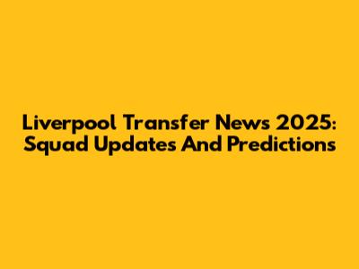 Liverpool Transfer News 2025: Squad Updates And Predictions