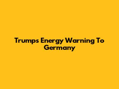Trump's Energy Warning To Germany