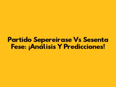 Partido Sepereirase Vs Sesenta Fese: ¡Análisis Y Predicciones!