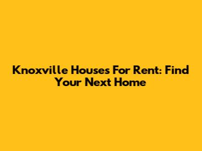 Knoxville Houses For Rent: Find Your Next Home