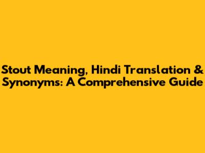 Stout Meaning, Hindi Translation & Synonyms: A Comprehensive Guide