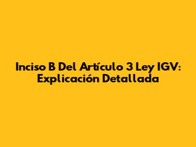 Inciso B Del Artículo 3 Ley IGV: Explicación Detallada