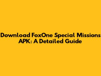Download FoxOne Special Missions APK: A Detailed Guide