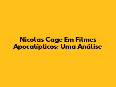 Nicolas Cage Em Filmes Apocalípticos: Uma Análise
