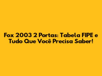 Tabela FIPE do Fox 2003 2 Portas: O Guia Definitivo