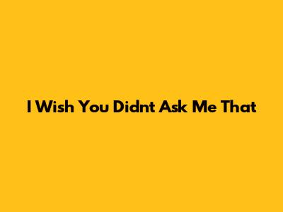 I Wish You Didn't Ask Me That