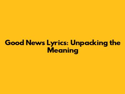 Hey guys! So, you're probably here because you've been hearing that catchy tune and wondering what exactly those good news lyrics are all about. It's totally normal to get hooked by a song and then want to dive deeper into its meaning, right? Well, you've come to the right place! We're going to break down the lyrics of "Good News" and explore the emotions and stories it conveys. Get ready to connect with the song on a whole new level.