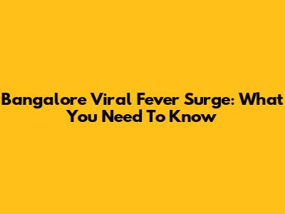 Bangalore Viral Fever Surge: What You Need To Know