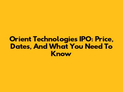 Orient Technologies IPO: Price, Dates, And What You Need To Know