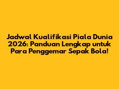 Guys, siap-siap buat demam sepak bola lagi! Kualifikasi Piala Dunia 2026 udah di depan mata, nih. Buat kalian yang penasaran sama jadwal kualifikasi Piala Dunia 23 Maret 2025, tenang aja, karena kita bakal kupas tuntas semuanya di sini. Mulai dari jadwal pertandingan, tim-tim yang bakal bertanding, format kualifikasi, sampai prediksi seru. Jadi, jangan sampai ketinggalan informasi pentingnya, ya!