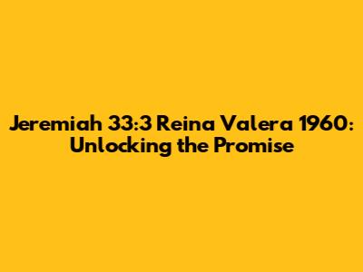 Hey guys! Ever stumbled upon a Bible verse that just seems to hold a universe of meaning within it? Well, Jeremiah 33:3 from the Reina Valera 1960 is definitely one of those verses. It's like a little key that unlocks a door to a deeper understanding of God's promises and our relationship with Him. Let's dive in and unpack this powerful verse together, exploring its context, meaning, and how it applies to our lives today.