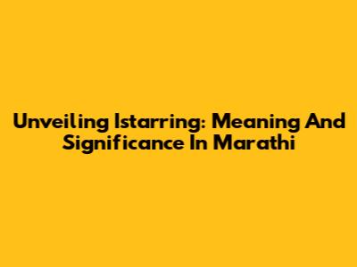 Unveiling 'Istarring': Meaning And Significance In Marathi