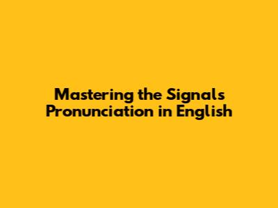 Mastering The Signals Pronunciation In English