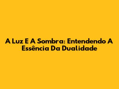 A Luz E A Sombra: Entendendo A Essência Da Dualidade