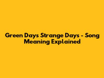 Green Day's 'Strange Days' - Song Meaning Explained