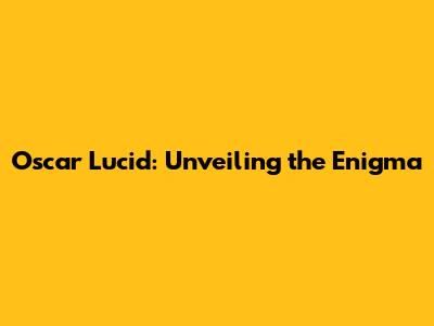 Oscar Lucid, the name itself whispers of mystery and intrigue. But who is Oscar Lucid? What makes this figure so captivating? Let's dive into the depths of the enigma surrounding Oscar Lucid, exploring every facet of this captivating persona. Whether you've stumbled upon the name for the first time or you're a long-time admirer, this exploration promises to unravel some of the captivating threads that weave together the story of Oscar Lucid.