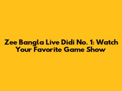 Zee Bangla Live Didi No. 1: Watch Your Favorite Game Show