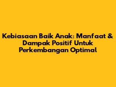 Kebiasaan Baik Anak: Manfaat & Dampak Positif Untuk Perkembangan Optimal