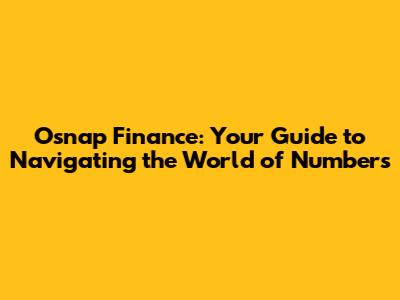 Hey finance enthusiasts! Ever heard of Osnap Finance? If you're scratching your head, no worries, we're diving deep into the world of numbers and what makes Osnap Finance tick. We'll break down the essentials, and hopefully, by the end of this guide, you'll be feeling confident and ready to tackle the financial landscape. So, let's get started!