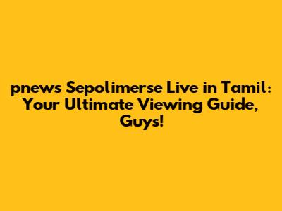 What's up, everyone! If you're on the hunt for pnews sepolimerse live in tamil coverage, you've landed in the right spot. We're diving deep into how you can catch all the action, understand the buzz, and really get into what makes this event so special, especially for our Tamil-speaking audience. Think of this as your go-to guide, your cheat sheet, your best buddy for all things related to watching pnews sepolimerse live, straight from a Tamil perspective. We'll cover where to stream it, what to expect, and why it's a must-watch event. So, grab your favorite snack, settle in, and let's get this party started!