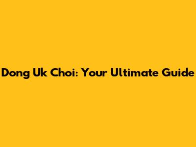 Dong Uk Choi: Your Ultimate Guide
