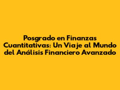 ¡Hola, futuros genios financieros! Si estás buscando llevar tus habilidades en finanzas al siguiente nivel, has llegado al lugar correcto. Hoy, vamos a sumergirnos en el emocionante mundo del posgrado en finanzas cuantitativas. Este programa es tu pasaporte para convertirte en un experto en análisis financiero avanzado, modelado financiero, y gestión de riesgos, entre otras áreas clave. Prepárense para descubrir cómo este posgrado puede impulsar tu carrera y abrirte las puertas a un futuro brillante en el sector financiero. ¡Vamos allá!