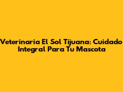 Veterinaria El Sol Tijuana: Cuidado Integral Para Tu Mascota