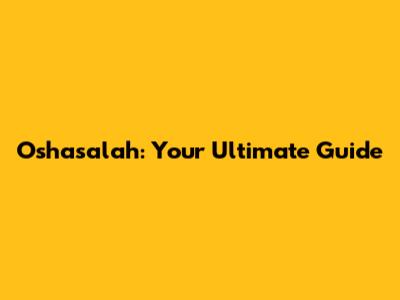 Oshasalah: Your Ultimate Guide