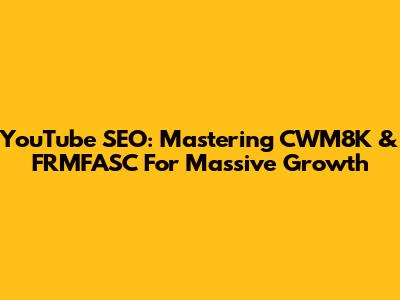 YouTube SEO: Mastering CWM8K & FRMFASC For Massive Growth