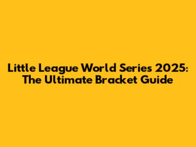 Little League World Series 2025: The Ultimate Bracket Guide