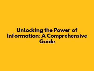 Unlocking The Power Of Information: A Comprehensive Guide