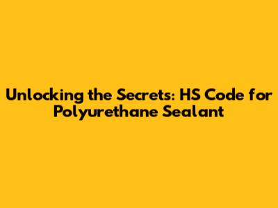 Unlocking The Secrets: HS Code For Polyurethane Sealant
