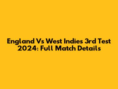 England Vs West Indies 3rd Test 2024: Full Match Details