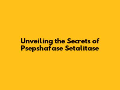 Diving Deeper: Unraveling the Mystery of Psepshafase Setalitase